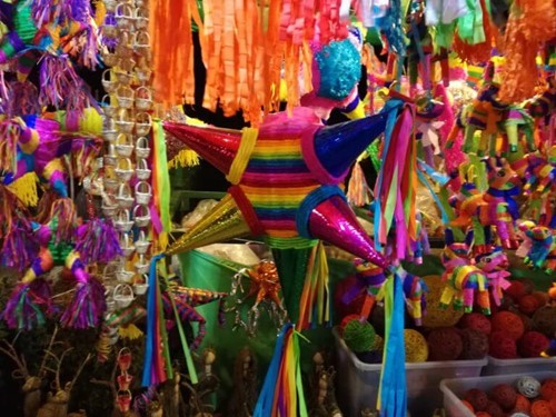 *Piñatas: they are the element that gives more color and fun to the posadas. They can be made of paper or clay and are decorated with many colors. The piñatas, which represent sins, are broken by hitting them with a stick while blindfolded and when they break, fruits, gifts and sweets fall out that everyone rushes to pick up.