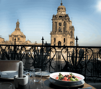 Termina tu recorrido y disfruta de un coctel con vista a la Catedral Metropolitana, en la terraza de Balcón del Zócalo, ubicado en el sexto piso del Hotel Zócalo Central.